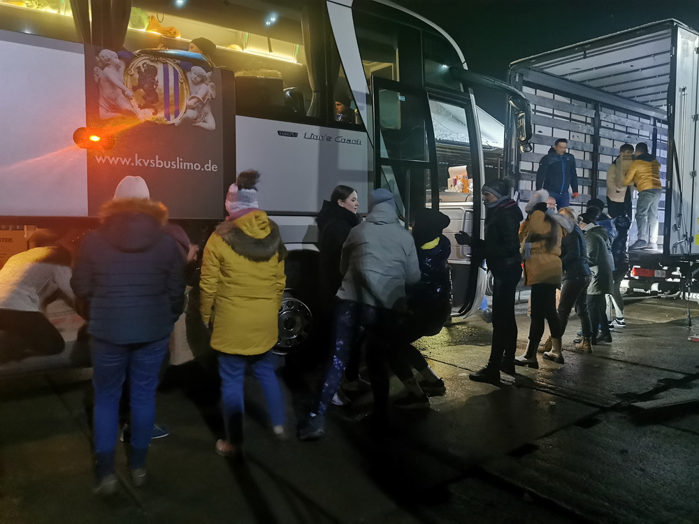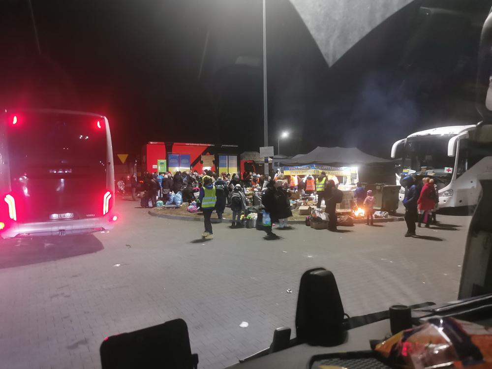 Am 4.3. 2022 startete unser erster Hilfskonvoi mit insgesamt 5 Reisebussen und 4 Transportern von Leipzig, Chemnitz und Mittweida aus nach Przemyśl an die ukrainisch-polnische Grenze.
