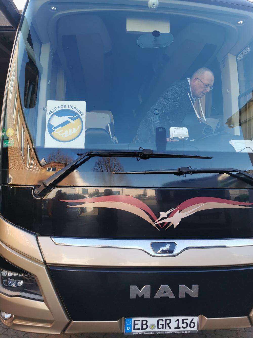 Am Abend des 19.3.2022 kam auch noch ein Bus mit Flüchtlingen in Taucha an. Der Bus wurde von einem Schauspieler organisiert.
