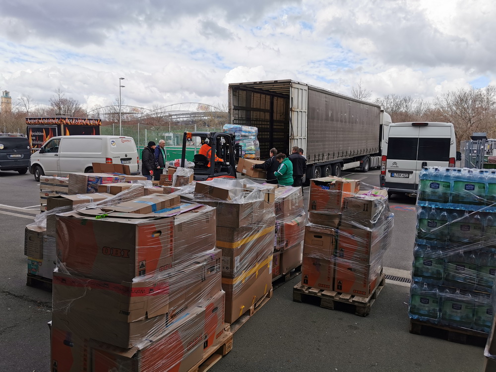 Durch tatkräftige Unterstüzung und mit Hilfe der Fangruppen der Icefigthers und der DHFK Fans "Die Feuerbälle" konnten wir am 19.3. 22 einen ganzen Lastzug mit Hilfsgütern in die Ukraine schicken.